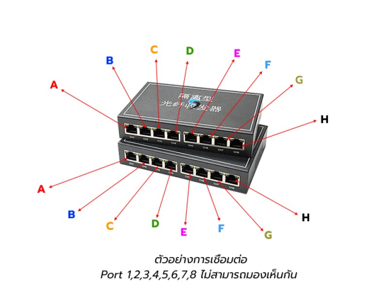 Gigabit Media Converter IN8 OUT8 VLAN Point To Point คือตัวส่งสัญญาณสำหรับ 8 อุปกรณ์ไปในสายไฟเบอร์ออฟติกเส้นเดียวกัน โดยทั้ง 8 อุปกรณ์จะไม่สามารถมองเห็นกันเองในแต่ละอุปกรณ์ เนื่องจากมี VLAN เป็นตัวกำหนดไว้ เพียงแค่ต่ออุปกรณ์ต้นทางและปลายทางให้ตรงพอร์ทกัน เทคโนโลยีนี้ช่วยประหยัดสายไฟเบอร์ออฟติกสำหรับงานติดตั้งใหม่ หรือช่วยแก้ปัญหางานติดตั้งเดิมทำให้ไม่ต้องเดินสายเพิ่มเพราะอุปกรณ์ชุดนี้ใช้สายไฟเบอร์ออฟติก Single Mode เพียง 1 Core และใช้งานได้ในระยะ 0-20 กิโลเมตร
