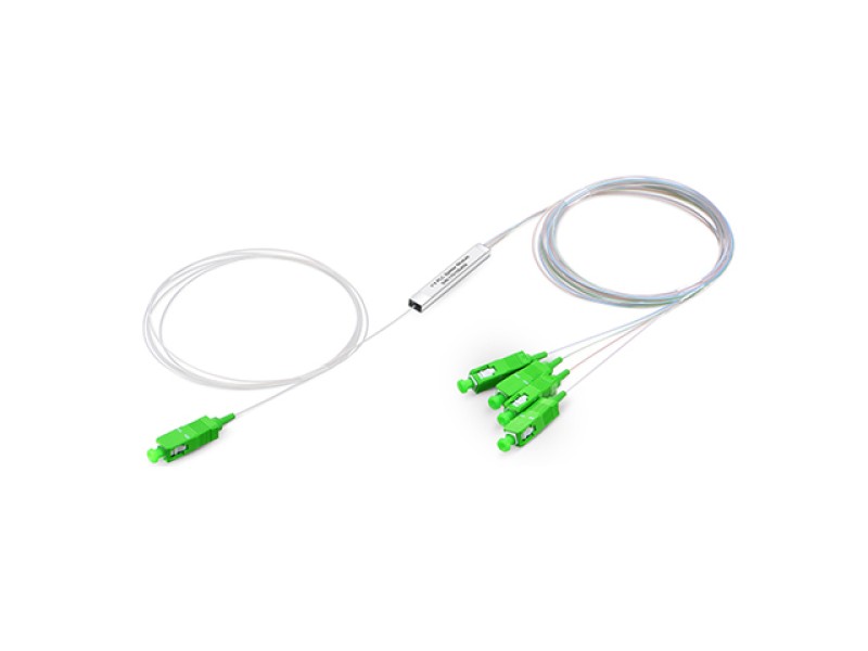 Splitter (PLC) Fiber Optic SC/APC 1X4 Mini Type ใช้โมดูลขนาดเล็กเป็นตัวแยกแสง จัดเก็บลงอุปกรณ์พักได้ง่าย ขนาดสาย 0.9 มิลลิเมตร ความยาวสายขาเข้า 1 เมตร และขาออก 1 เมตร เหมาะสำหรับแยกสัญญาณแสงจาก OLT ให้กับเครือข่าย PON รองรับความยาวคลื่นแสงตั้งแต่ 1260nm - 1650nm