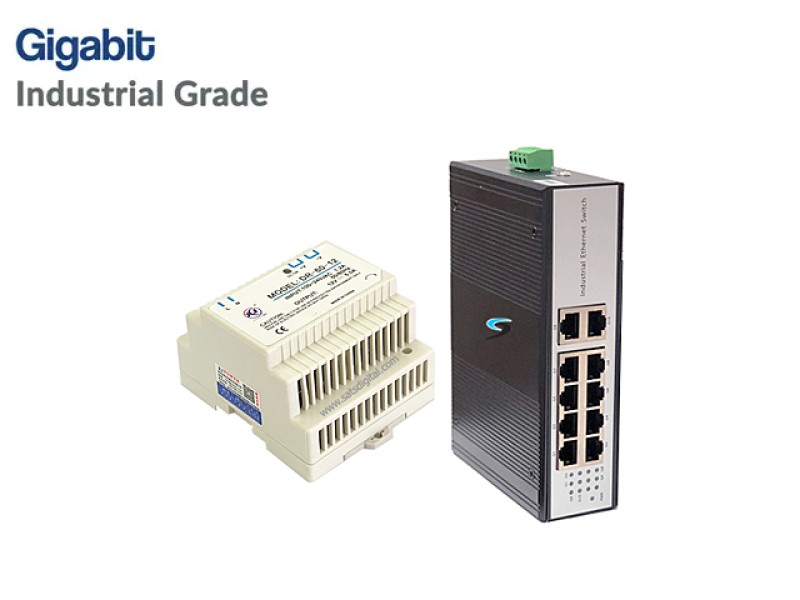 Gigabit Industrial Switch 10 Port + Power Supply Industrial 12V/5A สำหรับติดตั้งในโรงงานอุตสาหกรรมโดยเฉพาะ ออกแบบมาพิเศษเพื่อให้ทำงานได้ดีในสภาพแวดล้อมในระบบอุตสาหกรรม ทำงานได้ที่อุณหภูมิตั้งแต่ -30 องศา ถึง 70 องศาเซลเซียส ความเร็วในการรับส่งข้อมูลแบบ Gigabit อุปกรณ์ชุดนี้มีความพิเศษเหนือกว่าทั่วไปเพราะชุดอุปกรณ์จะเป็นชนิด Industrial ทั้งชุด รองรับการติดตั้งเข้ากับรางปีกนกขนาดมาตรฐานทั้ง 2 อุปกรณ์ สำหรับงานที่ต้องติดตั้งในตู้กลางแจ้ง หรือตำแหน่งที่มีความร้อนหรือเย็นมากกว่าสภาวะปกติ