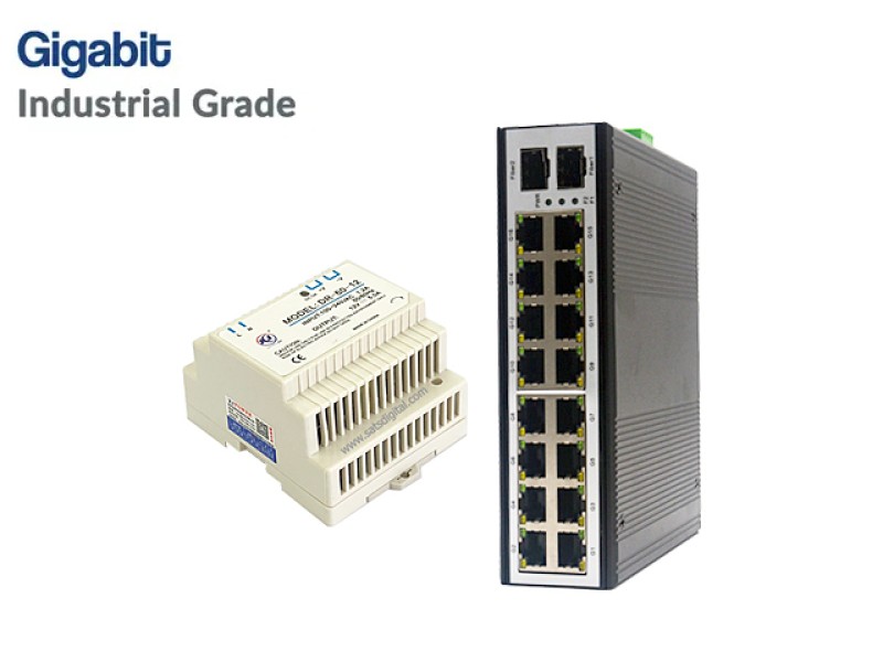 Gigabit Industrial Switch 16 Port + 2SFP + Power Supply Industrial 12V/5A สำหรับติดตั้งในโรงงานอุตสาหกรรมโดยเฉพาะ ออกแบบมาพิเศษเพื่อให้ทำงานได้ดีในสภาพแวดล้อมในระบบอุตสาหกรรม ทำงานได้ที่อุณหภูมิตั้งแต่ -30 องศา ถึง 70 องศาเซลเซียส ความเร็วในการรับส่งข้อมูลแบบ Gigabit อุปกรณ์ชุดนี้มีความพิเศษเหนือกว่าทั่วไปเพราะชุดอุปกรณ์จะเป็นชนิด Industrial ทั้งชุด รองรับการติดตั้งเข้ากับรางปีกนกขนาดมาตรฐานทั้ง 2 อุปกรณ์ สำหรับงานที่ต้องติดตั้งในตู้กลางแจ้ง หรือตำแหน่งที่มีความร้อนหรือเย็นมากกว่าสภาวะปกติ