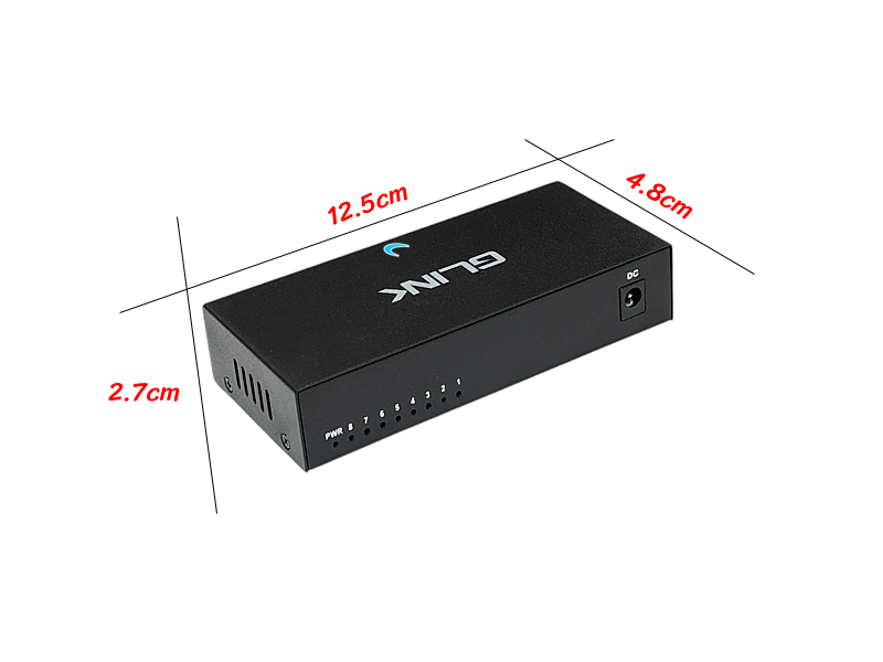 Gigabit Network Switch 8 Port แบรนด์ GLINK รุ่น GLH-02 อุปกรณ์สำหรับแยกหรือกระจายสายแลนอินเตอร์เน็ตความเร็ว 10/100/1000Mbps เหมาะกับระบบขนาดเล็กที่ต้องการกระจายวงแลนไม่เกิน 7 จุด เหมาะสำหรับบ้าน, ออฟฟิศขนาดเล็ก, หรืออุปกรณ์ IoT เชื่อมต่อกับ Router, คอมพิวเตอร์, NAS, กล้องวงจรปิด cctv Ip Camera หรือ Smart TV และอื่นๆที่ใช้โปรโตคอลแบบ TCP/IP ทุกชนิด