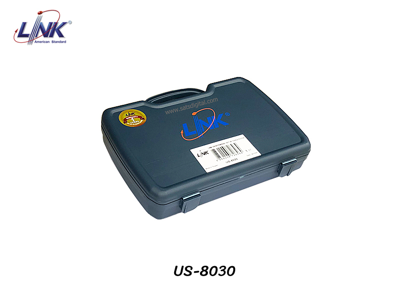 ชุดเครื่องมือเข้าหัวแลน แบรนด์ LINK รุ่น US-8030 (Lan Professional Set Of Tool&Tester) อุปกรณ์ครบคลุมครบชุด สำหรับงานเข้าหัวแลน Cat5e, Cat6 ด้วยคีมย้ำ อุปกรณ์กดตัดสายแลนลง Patch Panal รวมถึงฐานรองสำหรับเข้าหัวสายแลนตัวเมีย และเครื่องมือสำหรับทดสอบการเข้าหัวแลน เป็นต้น