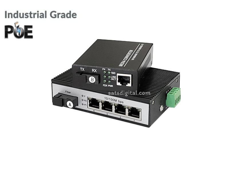 Industrial Fiber PoE Switch 10/100 Mbps 1X2 Port สำหรับติดตั้งในโรงงาน..