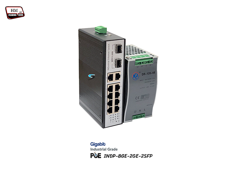 InDusTRial PoE Switch 8 Port + 2GE + 2SFP + Industrial Power Supply อุปกรณ์สำหรับจ่ายไฟให้กล้องวงจรปิด หรืออุปกรณ์ที่รองรับไฟ 48VDC ผ่านพอร์ทแลน มาตรฐานการจ่ายไฟ IEEE 802.3af/at อุปกรณ์ชุดนี้มีความพิเศษเหนือกว่าทั่วไปเพราะชุดอุปกรณ์จะเป็นชนิด Industrial ทั้งชุด รองรับการติดตั้งเข้ากับรางปีกนกขนาดมาตรฐานทั้ง 2 อุปกรณ์ สำหรับงานที่ต้องติดตั้งในตู้กลางแจ้ง หรือตำแหน่งที่มีความร้อนหรือเย็นมากกว่าสภาวะปกติ ส่วนโหมดการใช้งานด้านอัพลิ้งผ่านสายไฟเบอร์ออฟติก สามารถใช้ SFP Module 1.25G ได้ทั้งแบบ Single Mode และ Multimode โดยระยะทางขึ้นอยู่กับสเปคของ SFP