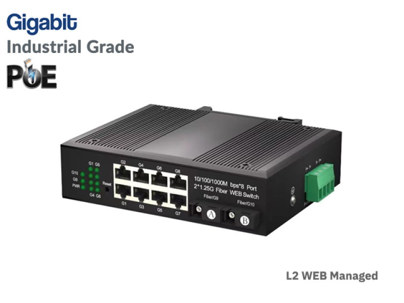 Gigabit Industrial L2 WEB Managed PoE Switch 8 Gigabit PoE + 2 SFP Por..