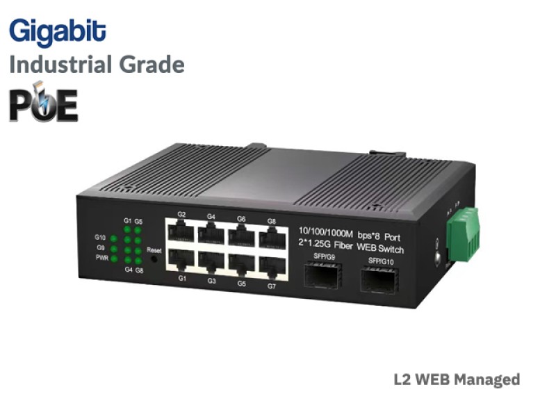 Managed L2 Gigabit IND PoE 8 Port + 2 SFP Uplink