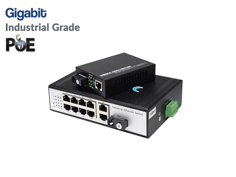 Gigabit Industrial Fiber PoE Switch 1X8 Port 20KM