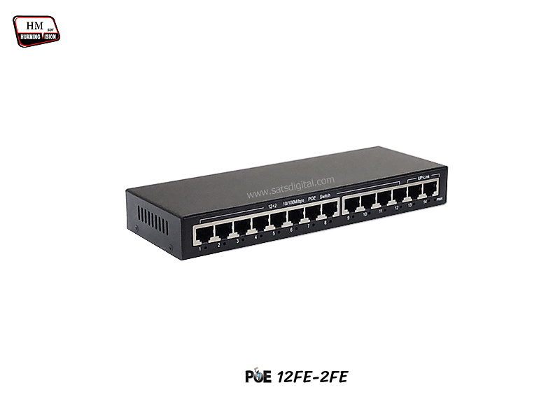 POE Switch 12 Port 10/100Mbps + 2 Uplink แรงดันไฟ 48V มาตรฐาน IEEE 802.3af/at เป็นอุปกรณ์จ่ายไฟและส่งข้อมูลไปในสายแลนเส้นเดียวพร้อมกัน รองรับการใช้งานร่วมกับกล้องวงจรปิดแบบ IP-Camera ทุกยี่ห้อ รวมถึง Access Point และอุปกรณ์อื่นๆ ที่รองรับ POE ในมาตรฐานดังกล่าว ระยะในการจ่ายไฟผ่านสายแลน + Data ที่ระยะ 100-130 เมตร ขึ้นอยู่กับคุณภาพของสายแลนที่ใช้งานโดยสายแลนแบบ Cat5E หรือ Cat6 อุปกรณ์ตัวนี้ช่วยให้การติดตั้งเป็นไปอย่างรวดเร็ว