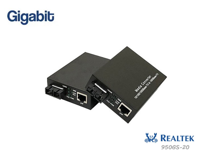 Gigabit Fiber Media Converter Duplex 1310 (nm) แบรนด์ OEM รุ่น 950GS-20 ใช้แผงวงจรแบบเต็มไม่ลดอุปกรณ์ในวงจรลงเหมือนรุ่นทั่วไปที่ใช้แผงวงจรแบบครึ่งแผ่น ทำให้มีความเสถียรสูงกว่าและใช้ ชิพเซท Realtek สำหรับงานด้านเครือข่ายอินเตอร์เน็ต และงานด้านอื่นๆที่ใช้รูปแบบการเชื่อมต่อข้อมูลแบบ TCP รองรับการใช้งานร่วมกับสายไฟเบอร์ออฟติก 2 Core ชนิด Single Mode ในระยะ 20 กิโลเมตร และ Multi Mode ในระยะ 2 กิโลเมตร และรองรับการใช้งานร่วมกับ SFP Module ชนิด Duplex 1310nm ได้เช่นกัน