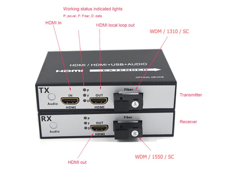 HDMI To Fiber Extender 4K + USB 20KM (Loop Out)