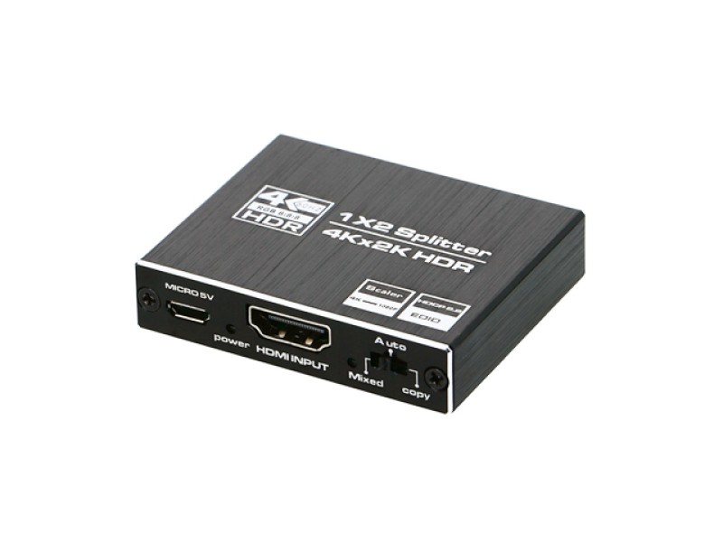 Mini Active HDMI Splitter 1X2 เวอร์ชั่น 2.0 4K@60Hz สำหรับใช้ในการแยกสาย HDMI จาก 1 เป็น 2 จากแหล่งจ่ายสัญญาณเดียวกัน เหมาะสำหรับแยกสัญญาณภาพต้นทางที่ส่งสัญญาณภาพ 4K ระดับ 60Hz เพื่อส่งต่อไปที่จอแสดงผลทีวี UHD, QLED การใช้งานจะสมบูรณ์แบบเมื่อใช้ร่วมกับสาย HDMI เวอร์ชั่น 2.0b ทั้งแบบสายทองแดงและแบบไฟเบอร์ออฟติก ตัวอุปกรณ์ผลิตจากวัสดุโลหะขนาดเล็กสวยงาม