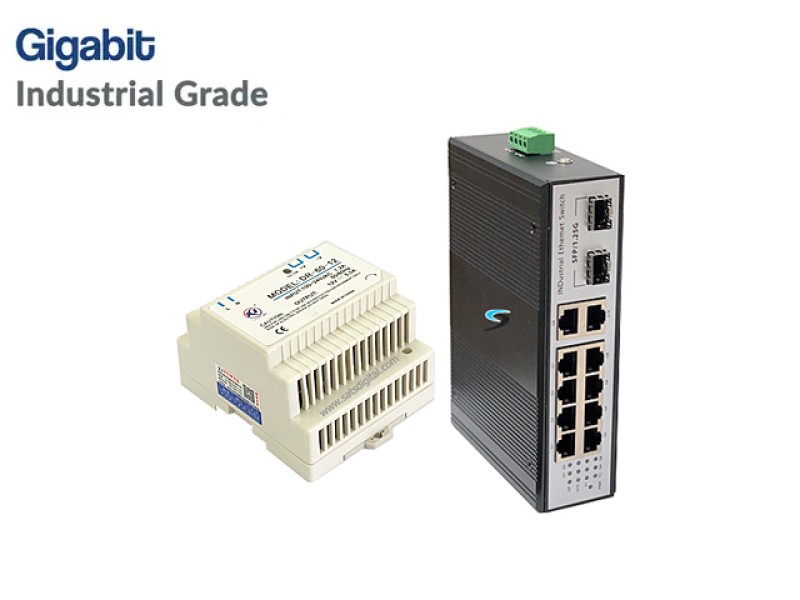Gigabit Industrial Switch 10 Port + 2SFP พร้อม Power Supply Industrial 12V/5A ครบชุด ออกแบบมาพิเศษเพื่อให้ทำงานได้ดีในสภาพแวดล้อมในระบบอุตสาหกรรม ทำงานได้ที่อุณหภูมิตั้งแต่ -30 องศา ถึง 70 องศาเซลเซียส ความเร็วในการรับส่งข้อมูลแบบ Gigabit อุปกรณ์ชุดนี้มีความพิเศษเหนือกว่าทั่วไปเพราะชุดอุปกรณ์จะเป็นชนิด Industrial ทั้งชุด รองรับการติดตั้งเข้ากับรางปีกนกขนาดมาตรฐานทั้ง 2 อุปกรณ์ สำหรับงานที่ต้องติดตั้งในตู้กลางแจ้ง หรือตำแหน่งที่มีความร้อนหรือเย็นมากกว่าสภาวะปกติ