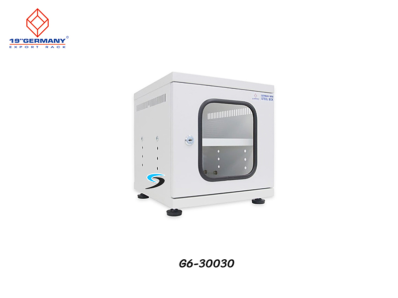 ตู้แร็คเก็บอุปกรณ์ขนาดเล็ก ยี่ห้อ Germany รุ่น G6-30030 สีเทาขาว ขนาด 30x30x30 ซม. ใช้จัดเก็บอุปกรณ์เครือข่ายคอมพิวเตอร์ ขนาดเล็กหรือเครื่องบันทึกภาพ DVR เพื่อความเป็นระเบียบเรียบร้อยของชุดอุปกรณ์ มีช่องรองรับการติดพัดลมระบายอากาศด้านบน สามารถติดตั้งแบบวางพื้นหรือยึดแขวนตู้แร็คเข้ากับผนังได้ ด้านหน้าปิดด้วยอะครีลิคใสมองเห็นด้านในได้อย่างชัดเจน พร้อมกุญแจล้อคอย่างดีเพื่อป้องกันบุคคลที่ไม่เกี่ยวข้องไปยุ่งเกี่ยวกับอุปกรณ์