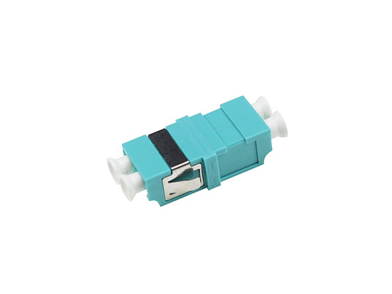 ตัวต่อหัวไฟเบอร์ LC-LC (UPC) Duplex OM3 Multi-mode อุปกรณ์สำหรับต่อกลางระหว่างหัวไฟเบอร์ออฟติก บ่งบอกถึงความเป็นสายไฟเบอร์แบบ Multi Mode OM3 สำหรับหัวไฟเบอร์ชนิด LC-LC (สีฟ้าน้ำทะเล) ชนิด Duplex (สายคู่) กรณีต่อกลางสาย 2 เส้น หรือต่อกับสาย Patch Cord ก่อนเข้าอุปกรณ์เช่น Media Converter, เร้าเตอร์ FTTH และใช้ยึดเข้ากับ Snap in Plate เป็นต้น