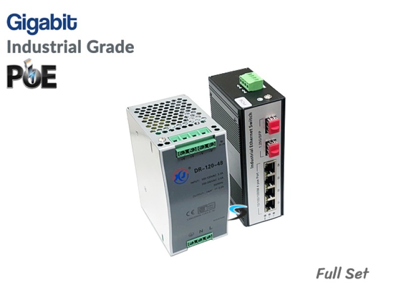 Gigabit InDusTRial PoE Switch 4 Port + 2SFP + Industrial Power Supply 48V/2.5A เป็นอุปกรณ์สำหรับจ่ายไฟให้กล้องวงจรปิด หรืออุปกรณ์ที่รองรับไฟ 48VDC ผ่านพอร์ทแลน มาตรฐานการจ่ายไฟ IEEE 802.3af/at อุปกรณ์ชุดนี้มีความพิเศษเหนือกว่าทั่วไปเพราะชุดอุปกรณ์จะเป็นชนิด Industrial ทั้งชุด รองรับการติดตั้งเข้ากับรางปีกนกขนาดมาตรฐานทั้ง 2 อุปกรณ์ สำหรับงานที่ต้องติดตั้งในตู้กลางแจ้ง หรือตำแหน่งที่มีความร้อนหรือเย็นมากกว่าสภาวะปกติ ส่วนโหมดการใช้งานด้านอัพลิ้งผ่านสายไฟเบอร์ออฟติก สามารถใช้ SFP Module 1.25G ได้ทั้งแบบ Single Mode และ Multimode โดยระยะทางขึ้นอยู่กับสเปคของ SFP