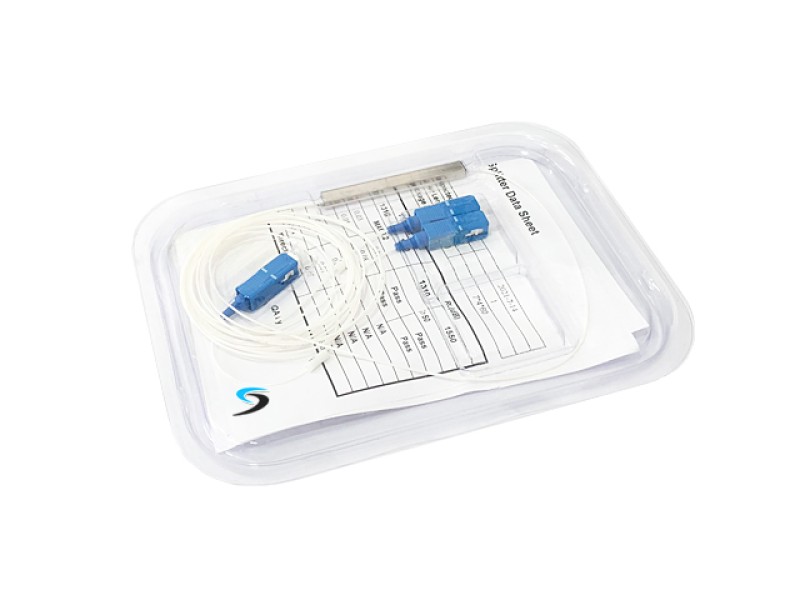 Mini Module PLC Splitter 1X2 SC/UPC ใช้โมดูลขนาดเล็กเป็นตัวแยกแสง จัดเก็บลงอุปกรณ์พักได้ง่าย ขนาดสาย 0.9 มิลลิเมตร ความยาวสายขาเข้า 1 เมตร และขาออก 1 เมตร เหมาะสำหรับแยกสัญญาณแสงจาก OLT ให้กับเครือข่าย PON รองรับความยาวคลื่นแสงตั้งแต่ 1260nm - 1650nm