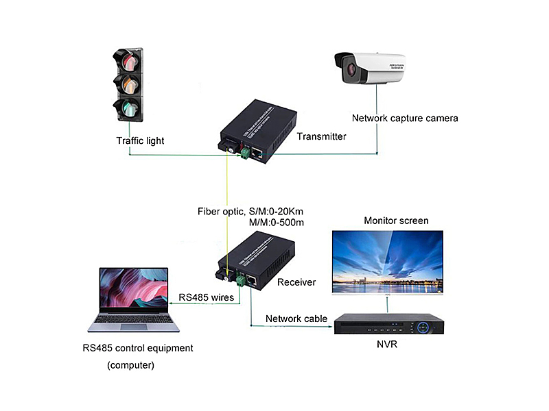 Optical Fiber Media Converter 10/100Mbps + RS485 1CH ชนิด Single-mode เป็นอุปกรณ์แปลงและรับส่งสัญญาณผ่านสายไฟเบอร์ออฟติกระยะไกล รูปแบบการรับส่งข้อมูล BIDI ชนิดพอร์ทเชื่อมต่อเป็นแบบ SC รองรับสายไฟเบอร์ออฟติก ชนิด Single-mode แบบ 1 Core ใช้งานได้ทั้งระบบเครื่อข่ายอินเตอร์เน็ต หรือกล้องวงจรปิดแบบ IP-Camera ความเร็วในการรับส่งข้อมูลแลนที่ 100Mbps รวมถึงการใช้งาน RS485 1 ชุด