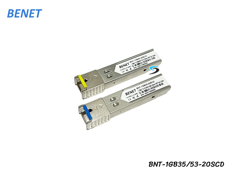 SFP Module 1.25G Single-mode SC BIDI DDM 1310/1550 20KM ยี่ห้อ Benet รุ่น BNT-1GB35-20SCD + BNT-1GB53-20SCD ความเร็ว 1.25Gbps หัวไฟเบอร์แบบ SC อุปกรณ์แปลงและรับส่งสัญญาณแสง หรือไฟเบอร์ออฟติกรองรับระยะสายไฟเบอร์ออฟติกที่ 20 กิโลเมตร รองรับการใช้งานร่วมกับแบรนด์หลักเช่น Cisco, Ruijie, Dell และ อุปกรณ์พื้นฐานทั่วไปเช่น LINK, Mikrotik, Ubiquti, D-link, Tp-link กรณีใช้กับแบรนด์หลักอื่นๆ ต้องแจ้งทางร้านก่อนเพราะอาจต้องทำการเขียนรหัสใหม่สำหรับกรณีนำไปใช้กับอุปกรณ์นั้นๆครับ